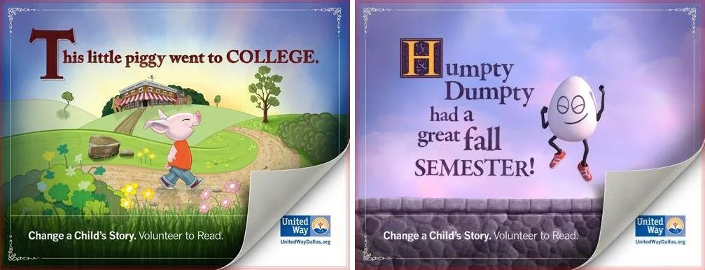 United Way of Metropolitan Dallas (Dallas, TX) – They recently launched a story book advertising campaign, in which they are using children’s stories to inspire people to volunteer as readers, tutors, and mentors. The focus of the ads is to volunteer to change a child’s story and they have a volunteer Web page specifically dedicated to this issue.