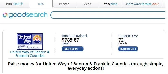 As a United Way, you need monetary aid to thrive and fund projects; you need bodies to fill volunteer slots. That is the nature of a nonprofit organization. Unfortunately, people often do not have extra money to give, or time to spare. However, Goodsearch.com, a Web site founded in 2006 and powered by Yahoo!, allows anyone with a computer to donate to your United Way for free. United Way of Benton and Franklin County (Kennewick, WA) is a wonderful example of a United Way that is benefiting from this Web site. See their numbers below:
