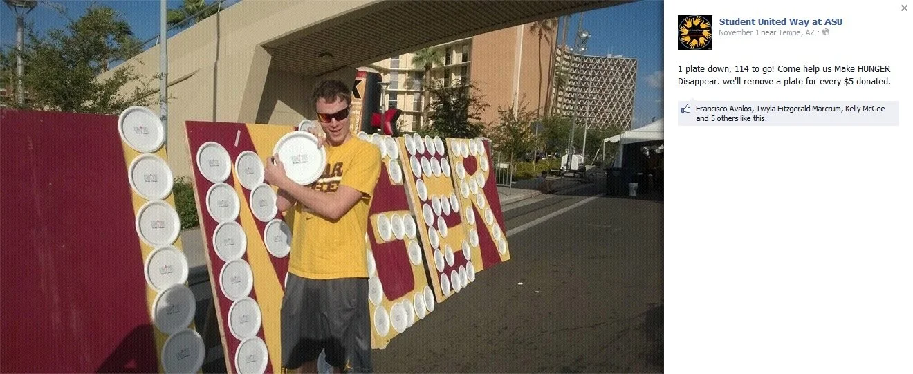 On their Facebook page, they explain that they work to end hunger and homelessness and help kids succeed in Tempe, and they are engaging people about these issues in creative ways, such as their posts about helping to make hunger disappear.