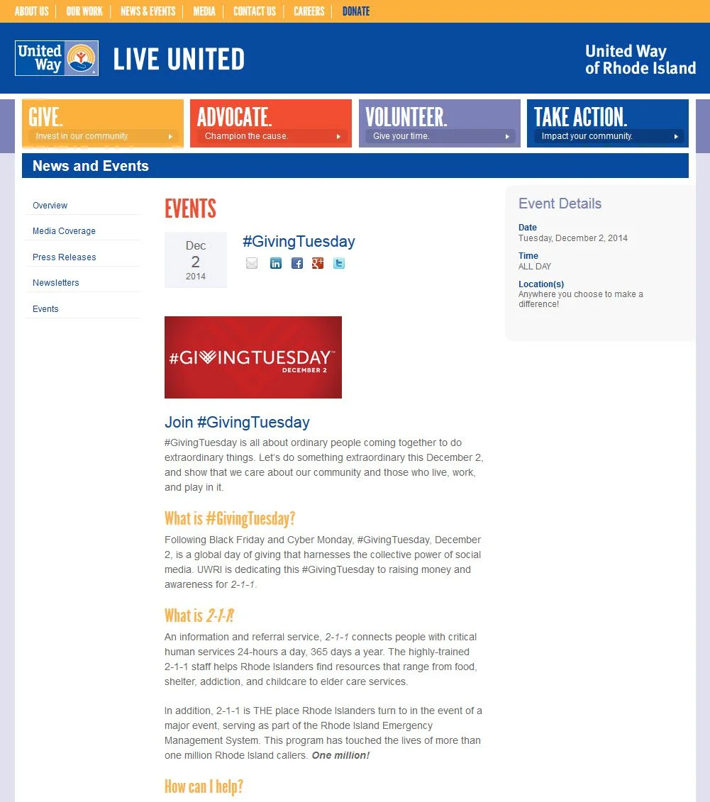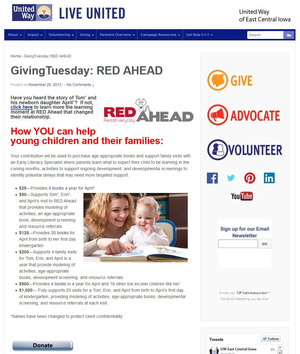 I wanted to find examples of United Way #GivingTuesday Web pages that made me want to give. These are the Web pages that grabbed my attention: