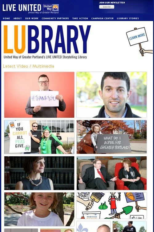 United Way of Greater Portland’s LUbrary Web page includes videos and illustrations, which tell the story of who they are and what they do, communicate the importance of issues in the community, and thank donors.