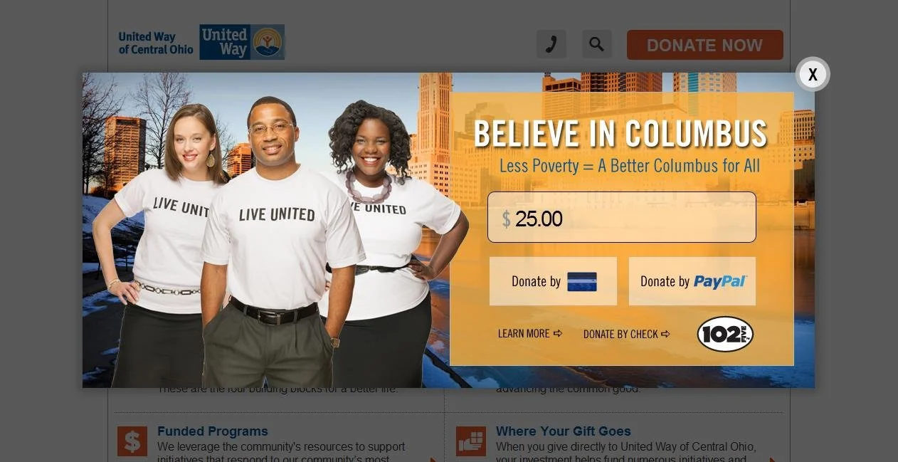 When you arrive at their Web site, a window pops up that says “Believe in Columbus. Less Poverty = A Better Columbus for All.” If you choose to make a donation, it takes you to a page which thanks you for donating, provides information about the impact of your contribution, and asks for your contact information.