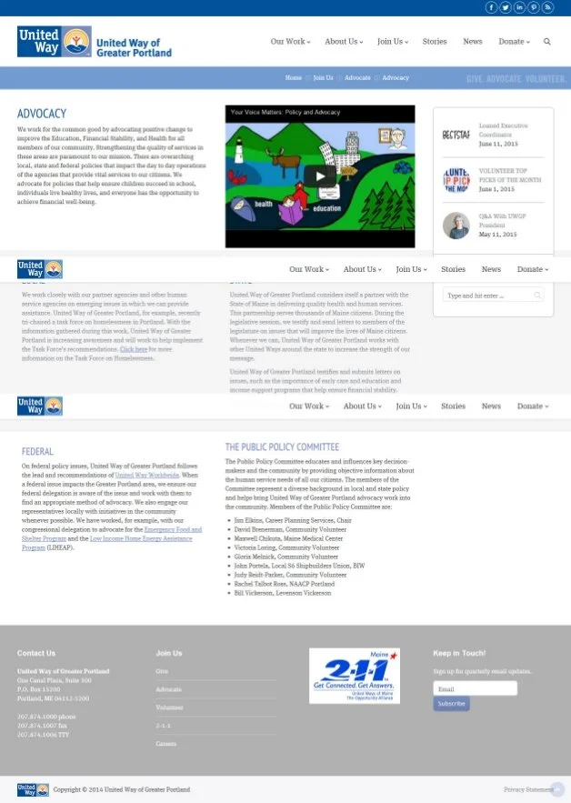 But, even more impressive is their Web page inviting people to “Become an Advocate.” This page includes a listing of how people can advocate and basic information related to advocacy. I especially want to focus on how United Way of Greater Portland is using this page to encourage people to advocate.