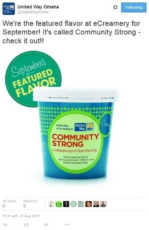 As United Ways across the country are doing campaign kick-offs and starting their annual fundraising campaigns, United Way of the Midlands (Omaha, Nebraska) will make your mouth water during their campaign with their “Community Strong” ice cream flavor, which is available at eCreamery during the month of September.