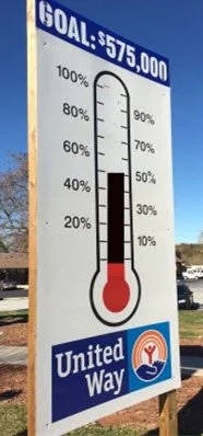 Once a year, many United Ways announce a campaign goal. Although it is impossible to know for sure how many United Ways announce a campaign goal, you can get a good idea of how many when you Google the phrase “United Way Campaign Goal” and find over 13,000 results. These campaign goal announcements often occur during some type of campaign kick-off celebration. Lots of people gather to hear and cheer as the campaign chairperson and local United Way president/CEO announce the campaign goal. Once announced, the campaign goal often appears on large thermometers outside of major employers and at busy intersections, which serve to show progress toward the campaign goal.