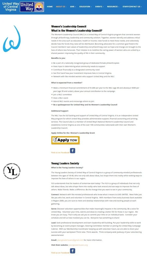 United Way of Central Virginia is offering two affinity groups – a Women’s Leadership Council and a Young Leaders Society. We think it is great that they are offering not one, but two ways to be involved with their United Way! In our work with United Ways across the country, we share the importance of being donor-centric and providing donor-centric methods to connect with people outside of workplace campaigns. It is absolutely essential to connect with donors in addition to the workplace campaign, in order to engage them throughout the year – and offering an affinity group is one of the donor-centric methods we recommend.